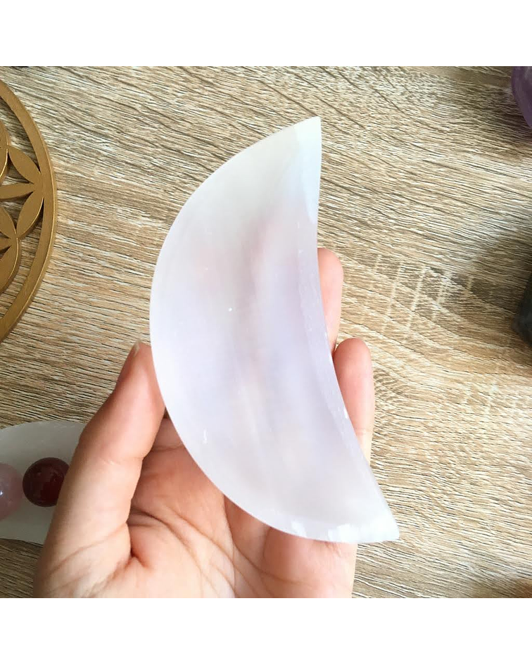 La selenita tiene la particularidad de ser una piedra que carga a las demás, las llena de su pura energía luminosa. Protege tus espacios con este bello bowl.