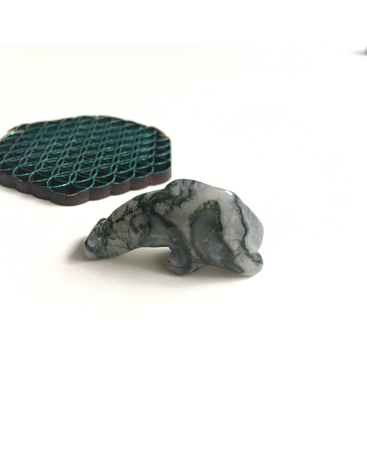El ágata viene en variadas formas, además es pariente del cuarzo, el ágata musgo trae pequeñas dendritas verdes que adornan y nos recuerdan lo natural. Es un cristal que nos asienta y conecta a madre tierra.