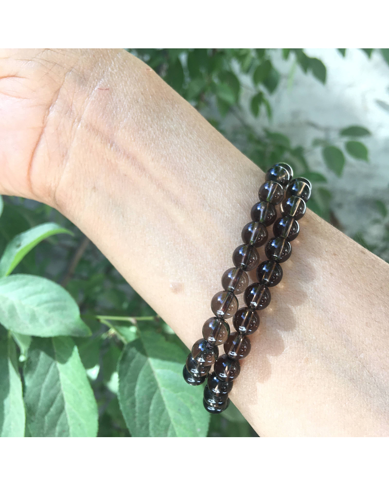 Pulsera elasticada estándar 6mm de cuarzo ahumado, un cuarzo esencialmente protector de energías y pensamientos negativos, ayuda con la depresión y nos conecta a tierra.