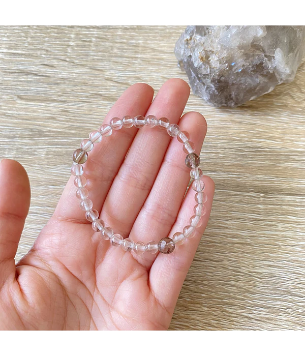 Pulsera elasticada con cuarzo ahumado facetado y cuarzo cristal.