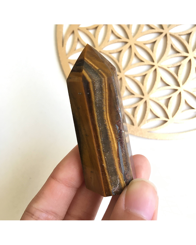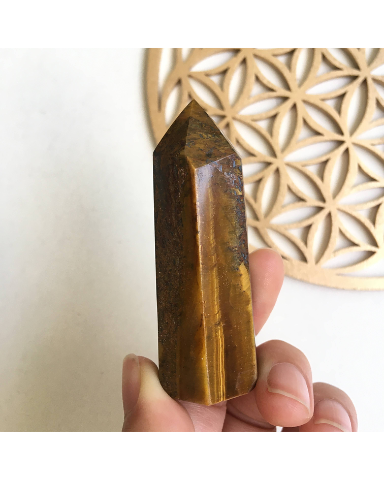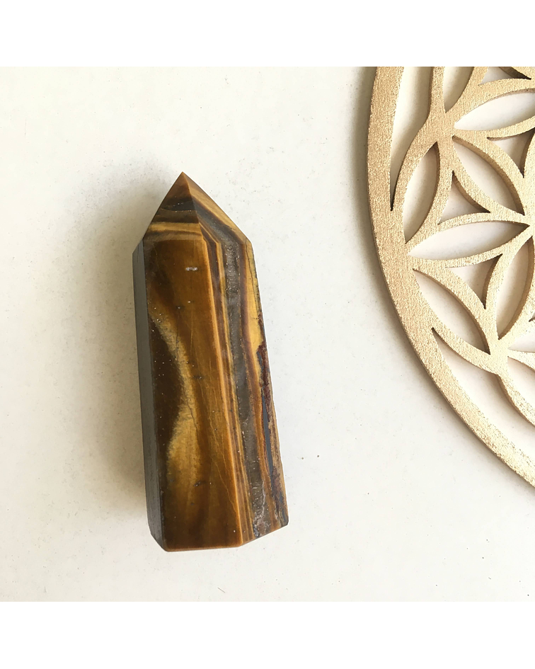 Ojo de tigre para la protección, buena suerte y prosperidad. Los obeliscos, puntas son generadores de energía. Disponla en tu altar o rinconcito de prosperidad, en tu mesa de centro o espacio especial.