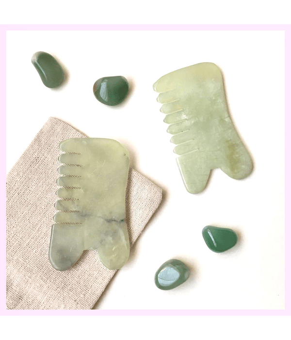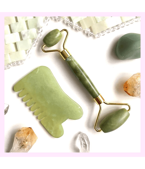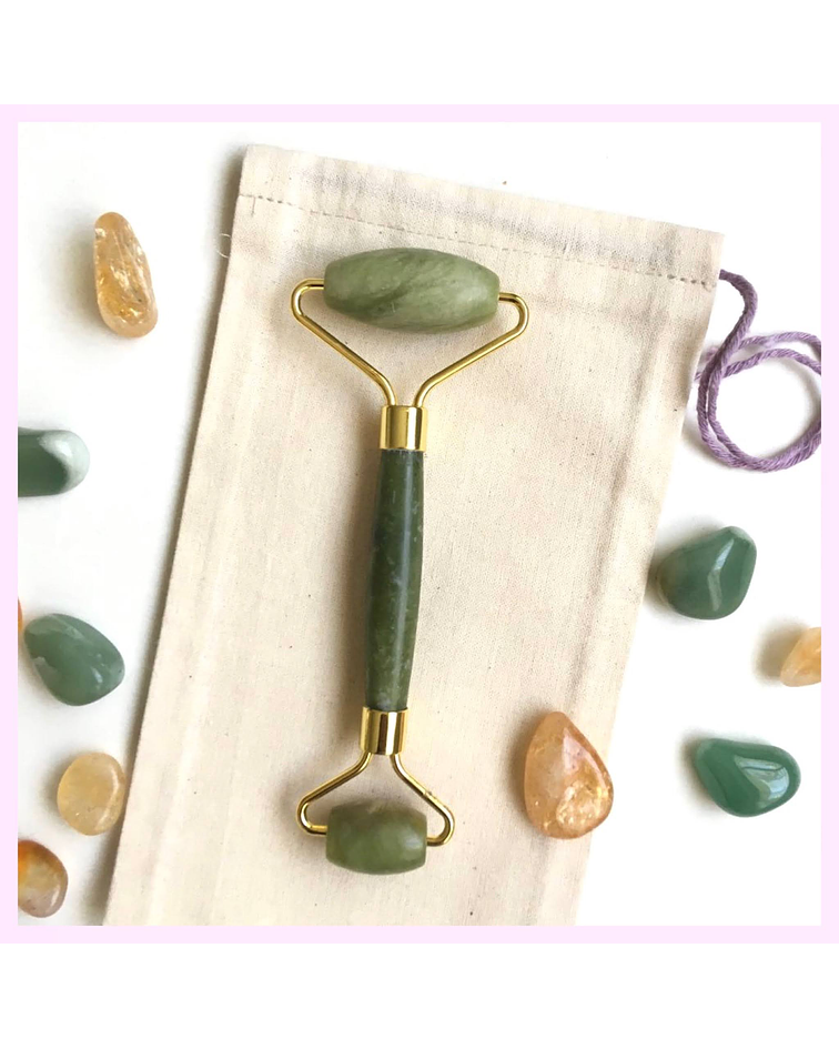El jade es una piedra vitalizante que te animará en el día, ayuda para la salud. Masajea cara y cuerpo con este roller, que trae dos cabezales; uno pequeño para zonas como bozo y ojeras, y uno más ancho para mejillas y cuello.